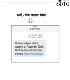 रायपुर, छत्तीसगढ़ राज्य म आरटीओ ई-चालान ले जुड़े धोखाधड़ी के मामला आगू आवत हे। साइबर अपराधी परिवहन विभाग के वेबसाइट के नकली (क्लोन) पेज बनाके मनखे मन ल ट्रैफिक नियम तोड़े के डेरूवाए वाले संदेश भेजत हें। ए संदेश मन म देहे गए लिंक म किलिक करतेच मनखे मन के व्यक्तिगत जानकारी अऊ बैंक खाता ले पइसा चोरी हो जात हे। जे पाए के यातायात विभाग के अधिकारी मन ह आम नागरिक मन ले अपील करे हें के कोनो अनजान मैसेज लिंक एपीके फाइल या निजी मोबाइल नंबर ले भेजे…